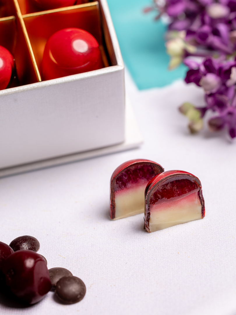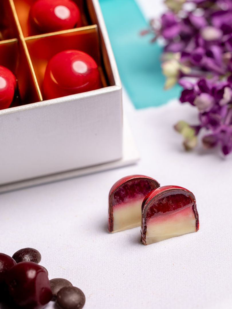 Vişne, şeker, pektin, bitter çikolata, krema, sütlü çikolata.