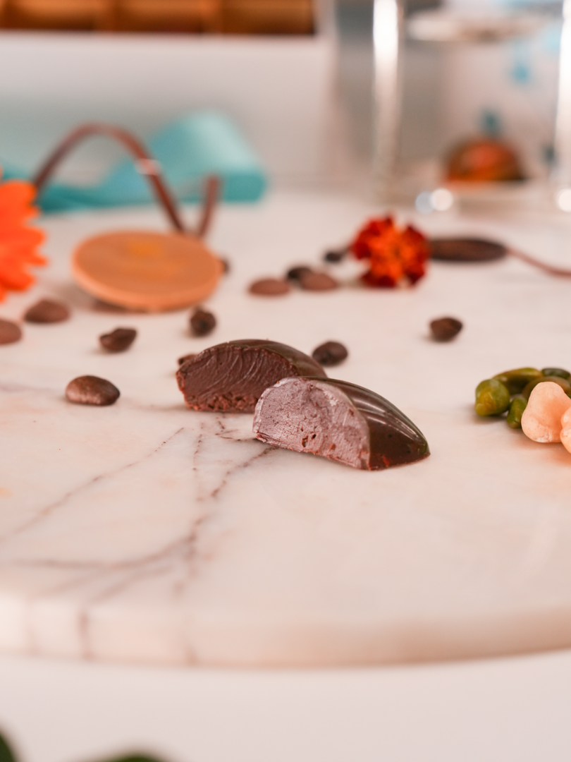 Krema, Türk kahvesi, bitter çikolata, fındık, fıstık, badem, şeker, tereyağı